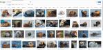 I then added a large(ish) slightly flattened oval surrounding the initial shape, tweaking the aspect ratio until proportions looked right. Turning to the question of fur, I sketched in little straight lines round the oval, flaring them to join the main figure. I noticed in various images, that an otters head seems to have a small dimple on top of the head and a slightly larger indent underneath the mouth, where the fur is drawn as parting. I added these into the design, as slight ‘suggestions’ of shape change. In an image from OSCAR the otter’s eyes are depicted as dark with a slight highlight. I chose to replicate this in the design. At this point, I compared my efforts with various images…
