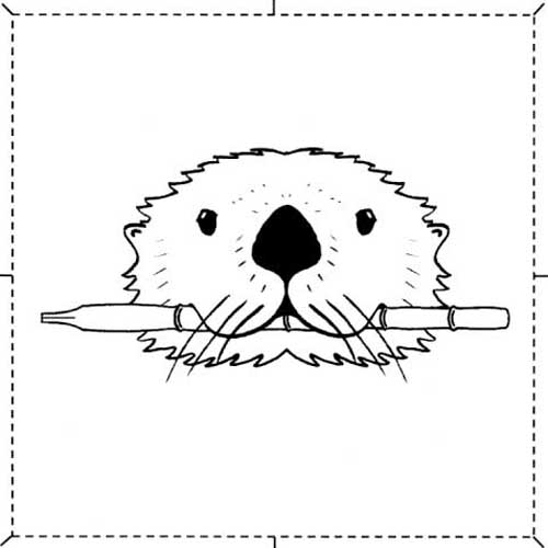 I then added a large(ish) slightly flattened oval surrounding the initial shape, tweaking the aspect ratio until proportions looked right. Turning to the question of fur, I sketched in little straight lines round the oval, flaring them to join the main figure. I noticed in various images, that an otters head seems to have a small dimple on top of the head and a slightly larger indent underneath the mouth, where the fur is drawn as parting. I added these into the design, as slight ‘suggestions’ of shape change. In an image from OSCAR the otter’s eyes are depicted as dark with a slight highlight. I chose to replicate this in the design. At this point, I compared my efforts with various images…