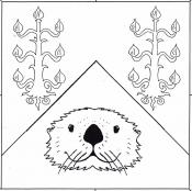 I had been designing a lot of doubleface patterns a few months ago, using other people’s heraldic devices for inspiration, as well as extant armorials. As another member of my shire uses an otter’s head in her device, it piqued my interest as a potential tablet weaving pattern.