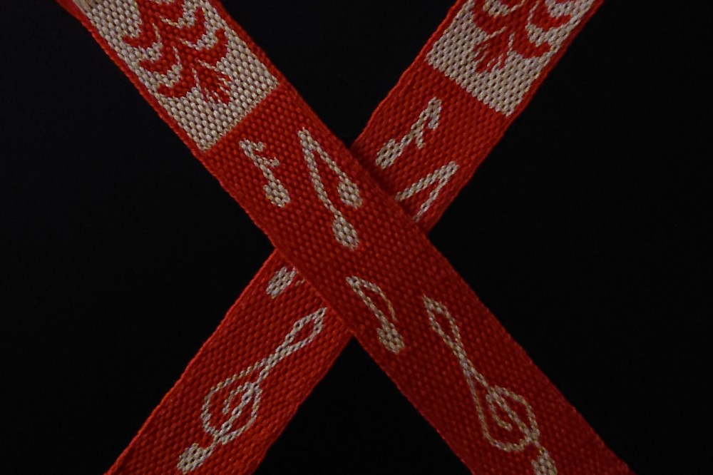 Last year, a music competition featured in the schedules of two kingdom events. I started wondering “can musical notes be depicted in tablet weaving?” Knowing nothing of how notes were drawn in extant manuscripts, I experimented with a familiar style of notation. I created the designs in GTT, then made two bookmarks in double face tablet weaving, showing quavers etc and a treble clef. Oh, and I added a pine tree too 🙂
