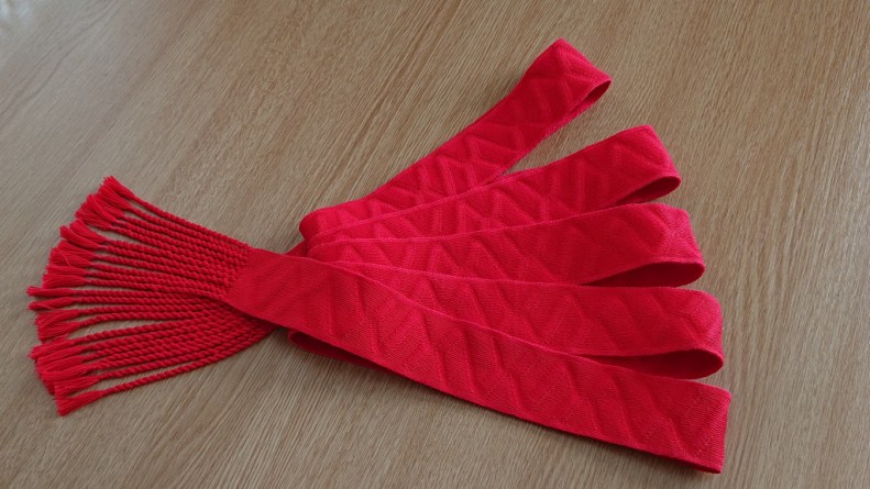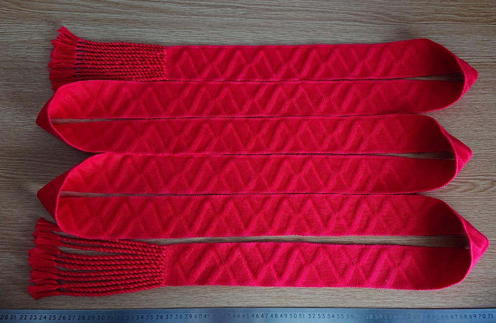 The finished piece is about 3m long excluding fringes and 45-47mm wide.