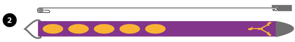 - ~2-3cm lead-in plain doubleface, for turn under, hemming and attaching tip.