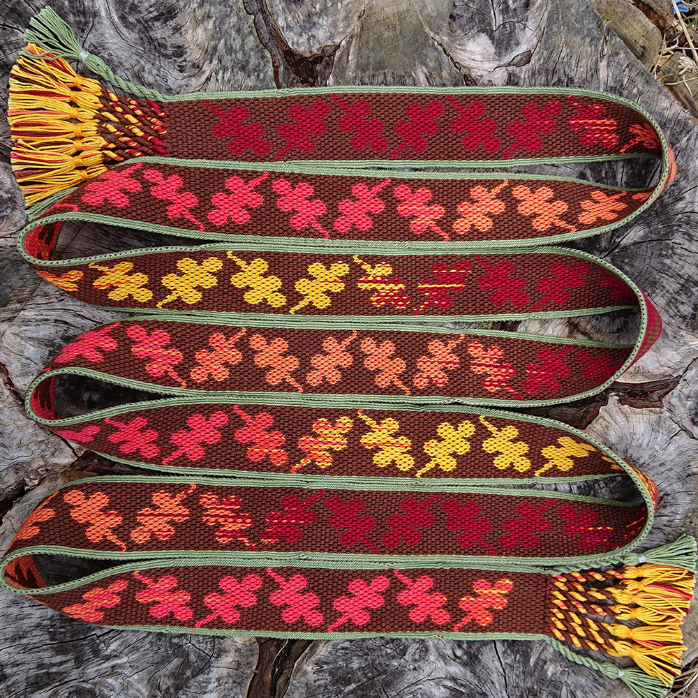 I love playing with string, and I’m fascinated by tablet weaving. I’m particularly interested in reversible patterns for belts and bag straps. I’ve also developed a passion for designing patterns. When creating new designs, I look at many sources for inspiration. For example: digitised manuscripts, museum collections, and nature photography.
