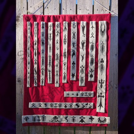 Here I offer three patterns for “mini” ermine points. They require a maximum of 18 cards. Each can be reproduced with as few as 12 cards (8 pattern cards plus 2 border cards either side). Do you want to try doubleface tablet weaving? Have a go with these 🙂